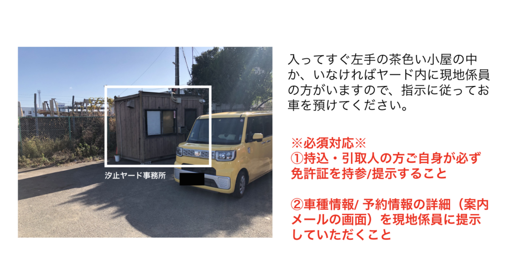 愛知県・汐止ヤードへのお車の持ち込み・引き取り方法をこちらに記載します。